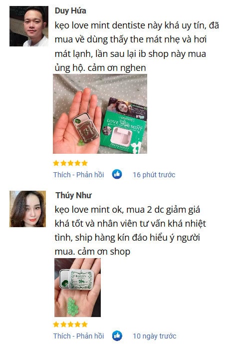 Love Mint là kẹo ngậm bạc hà mát lạnh, giúp khử mùi và mang lại cảm giác sảng khoái trong các tình huống thân mật như hôn hoặc khi quan hệ bằng miệng. Đặc biệt, viên kẹo còn hỗ trợ làm sạch khoang miệng, giúp hơi thở luôn thơm mát.